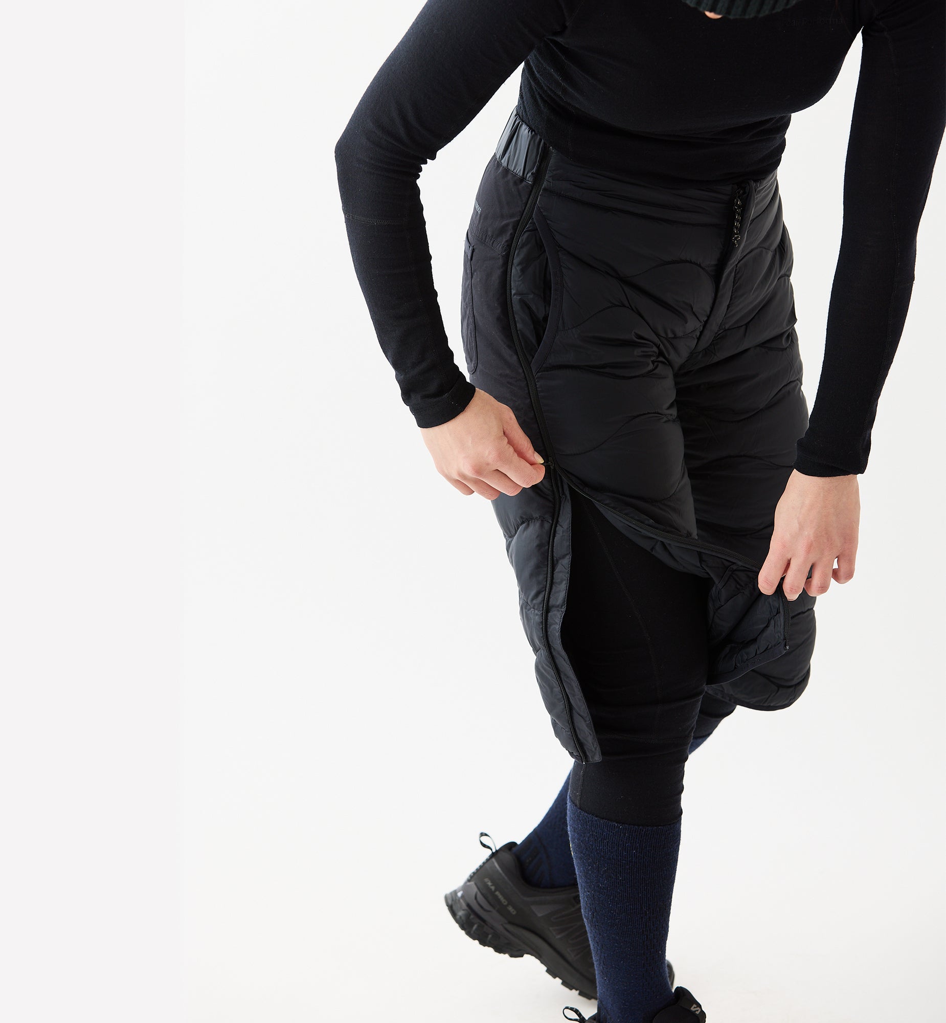 冬場のアウトドアアクティビティやスポーツ時のレイヤリングに最適なアイテムで、身体のコアを冷えから守り、保温力と動きやすさを両立。