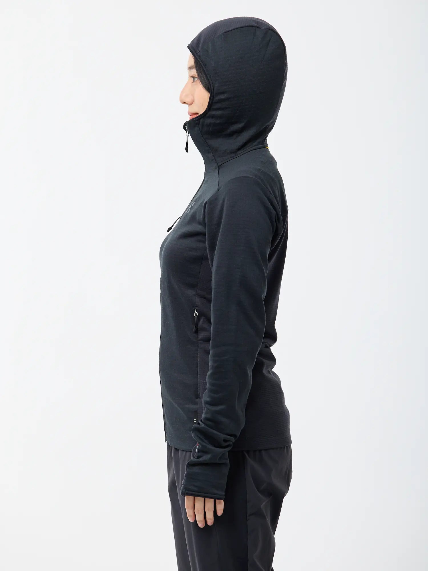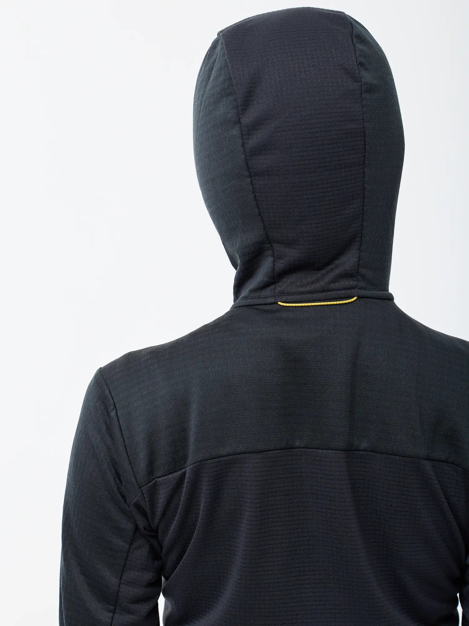 スマートフォンを冷気から守る胸ポケット、小物を収納できる2つのハンドポケット、袖のサムホール、ヘルメットとの相性がいいフードなど、ミドルレイヤーに求められるスペックを搭載しています。