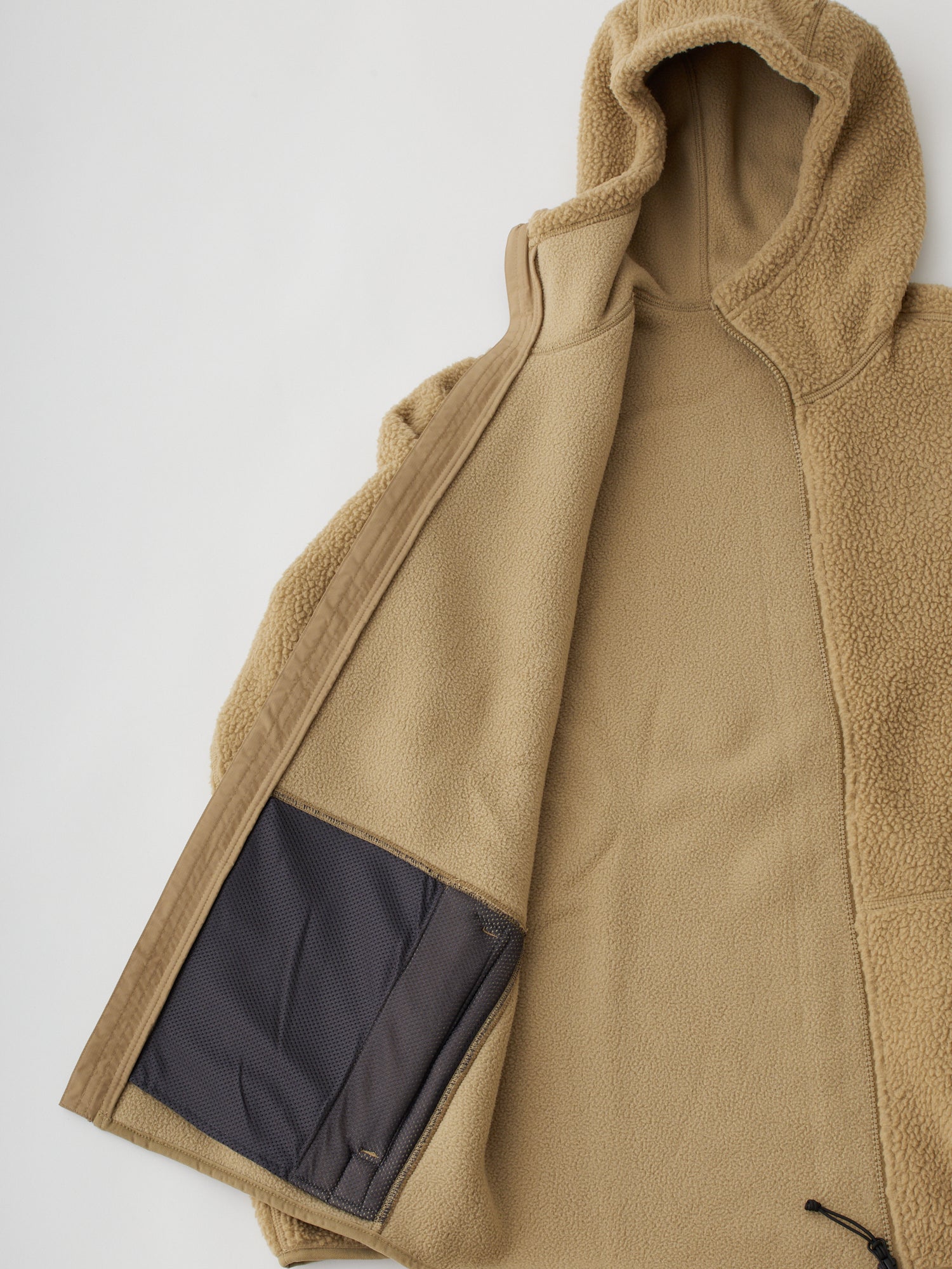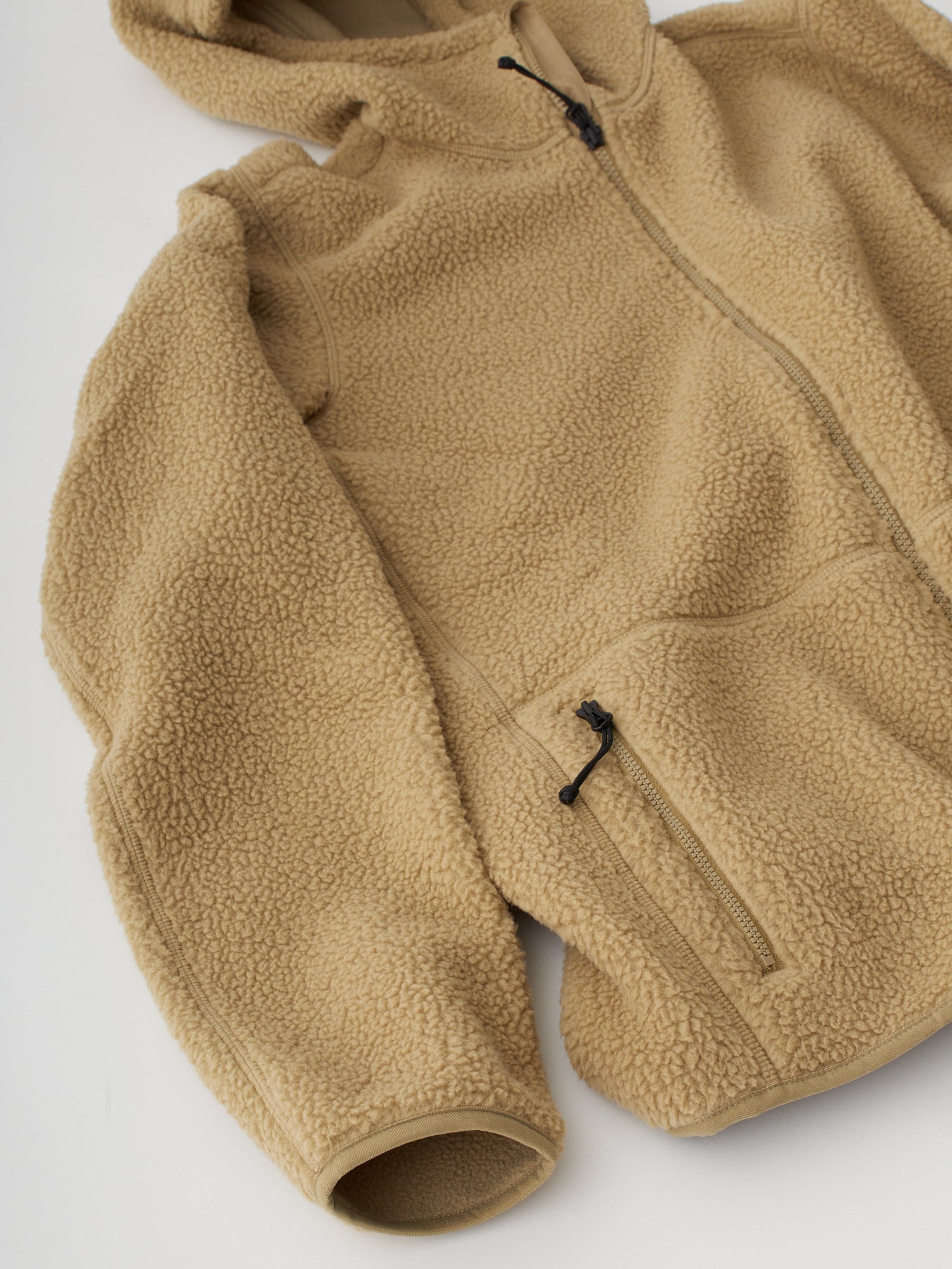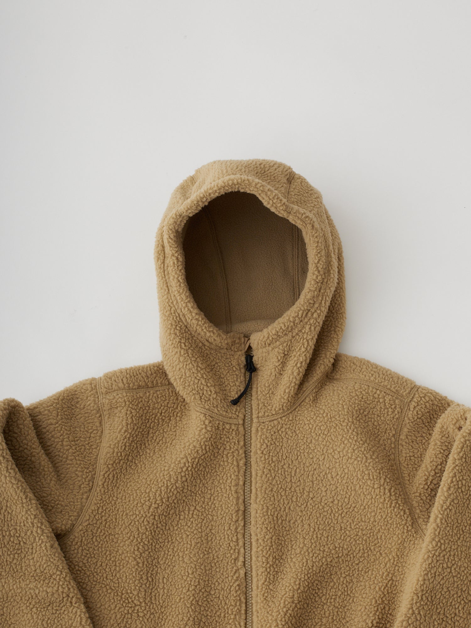 控えめな佇まいの中に、実直な機能美を宿したフリースフーディです。